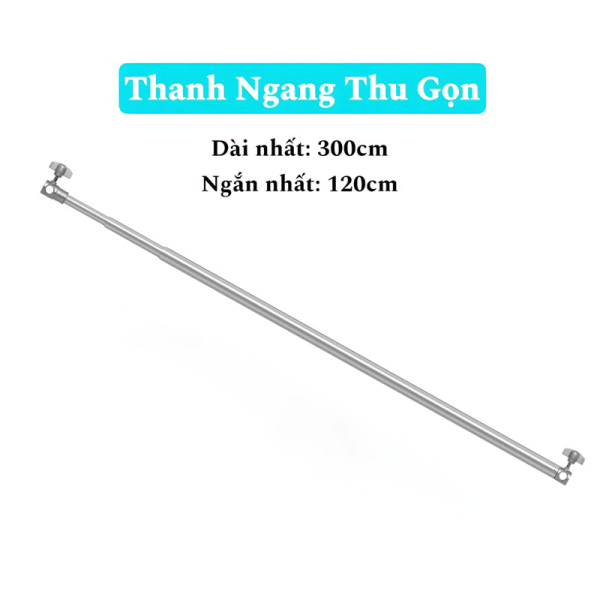 - Thanh ngang: Inox 304( ở chiều dài thu gọn là 1m2, chiều dài khi kéo ra tối đa là 3m)