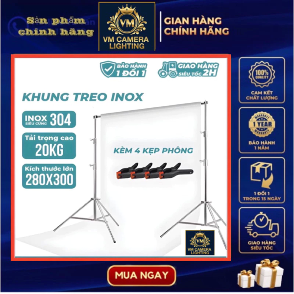 VM Camera & Lighting xin giới thiệu bộ khung treo phông di động inox dùng chân loại tốt nhất thị trường trong tầm giá, chân BLS280(2m8) Lưu ý: Bộ treo phông không bao gồm phông.